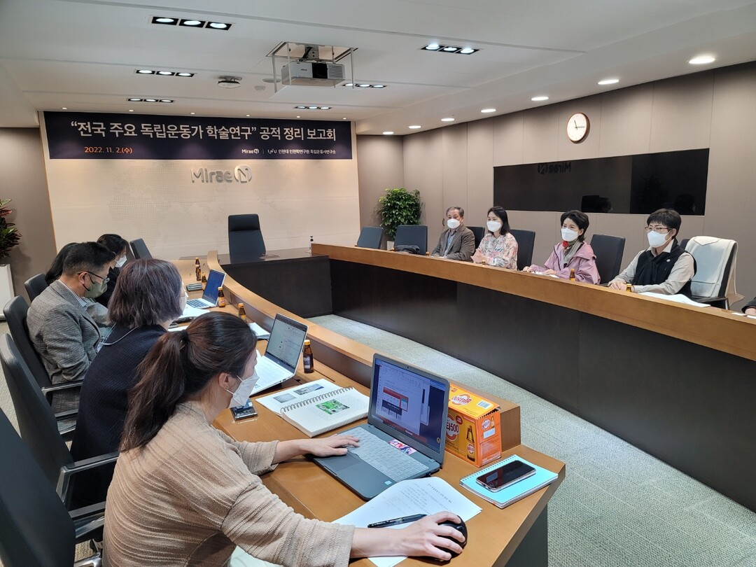 [대학저널 오혜민 기자]인천대학교 인천학연구원 독립운동사연구소가 2일 교육출판전문기업 미래엔 서울 본사에서 ‘전국 주요 독립운동가 공적 정리’ 보고회를 열었다.