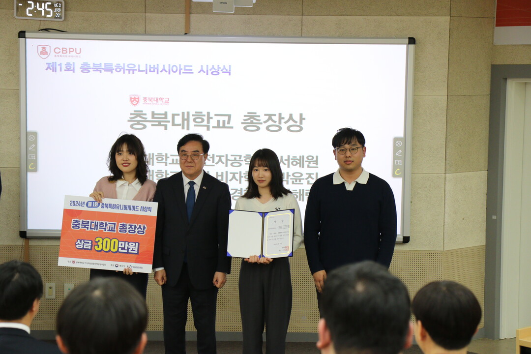 [대학저널 이선용 기자] 충북대학교는 2월 28일 오후 2시 인문사회관에서 ‘제1회 충북특허유니버시아드(CBPU) 시상식’을 개최했다고 밝혔다.