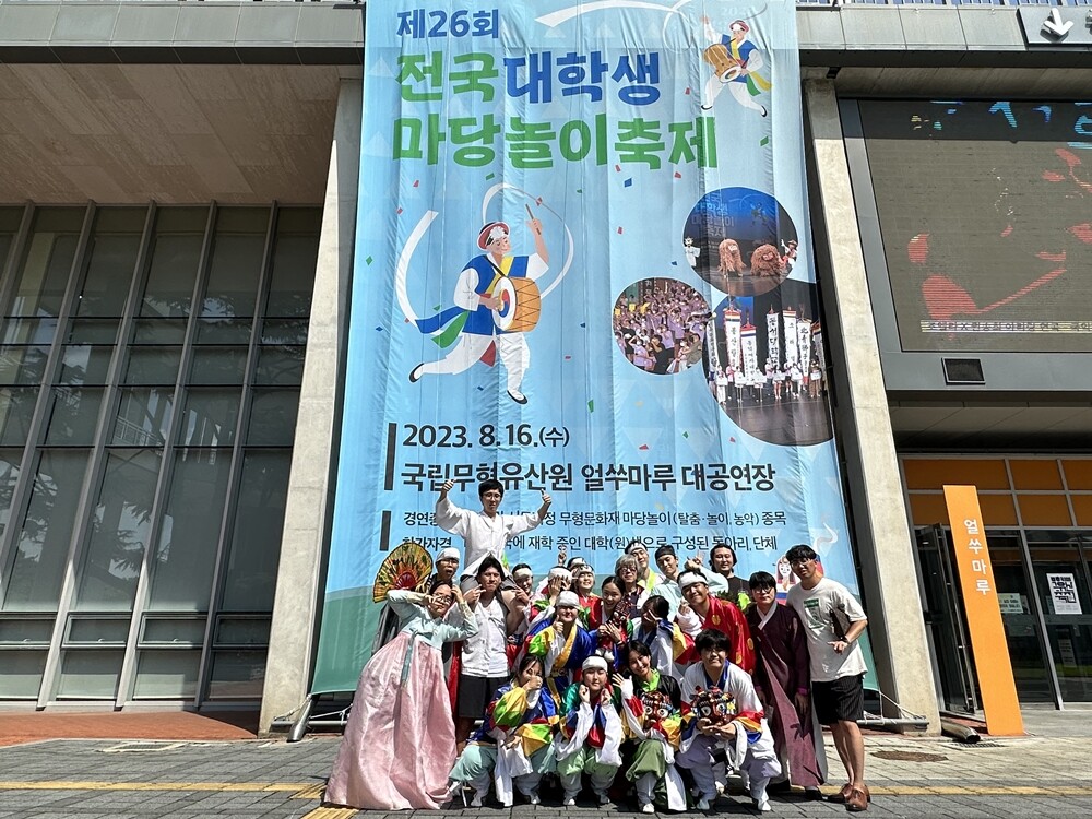전국대학생마당놀이축제는 1988년에 시작으로 농악, 탈춤ㆍ놀이를 전승하고 대학생들이 모여 실력을 겨루며 우리 전통예술을 순수하게 대학생들이 즐길 수 있는 자리이자 전통과 젊은 세대가 소통하는 대회이다. 지난 16일 국립무형유산원 대공연장에서 열렸다.