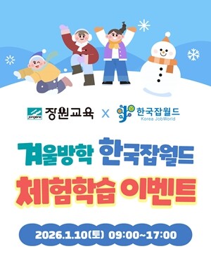 종합교육기업 장원교육(대표 문규식)이 한국잡월드(이사장 이병균)와 함께 ‘겨울방학 잡월드 체험학습’ 이벤트를 2026년 1월 10일(토) 경기도 성남시 분당구 소재 한국잡월드에서 진행한다.