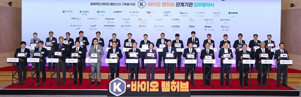 협약식에는 K-바이오 랩허브를 함께 구축·운영할 연세대와 중기벤처부, 인천시뿐만 아니라 삼성바이오로직스, 셀트리온, SK바이오사이언스, 대웅제약, 유한양행, 녹십자, 우정바이오, 연세대 의료원, 한국바이오협회, 한국제약바이오협회, 한국벤처캐피탈협회 등 우리나라를 대표하는 바이오 기업, 대학, 연구기관, 병원, 지역 바이오 클러스터, 관련 협회 등 31개 기관이 참여했다.