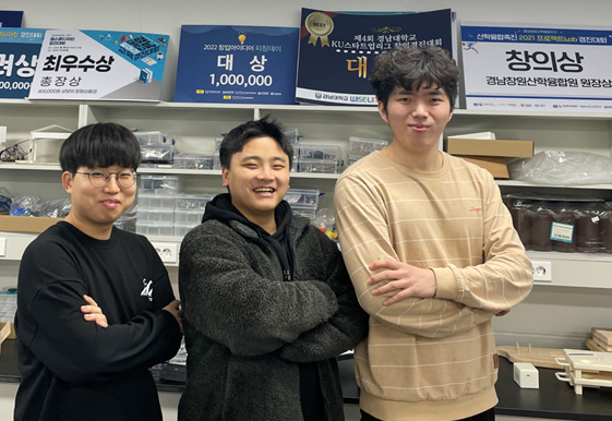 왼쪽부터 경남대 기계공학부 박규민, 양준식, 송지훈 학생. |