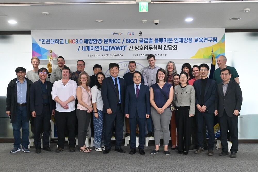 세계자연기금(WWF) 관계자 20여명이 3일 인천대를 방문했다. 인천대는 세계자연기금과 블루카본 공동협력사업을 추진하기로 했다. 사진=인천대 제공 |