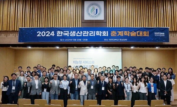 제주대에서 열린 한국생산관리학회 주관 ‘2024년 한국생산관리학회 춘계학술대회’에서 참석자들이 단체 기념 촬영을 하고 있다. |