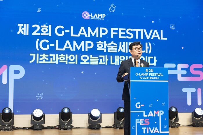 지난 2025년 12월 2일 전북 부안 소노벨 변산에서 열린 제2회 G-램프(LAMP) FESTIVAL에서 경북대 이현식 교수가 개회사를 하고 있다. 사진=경북대 제공 |