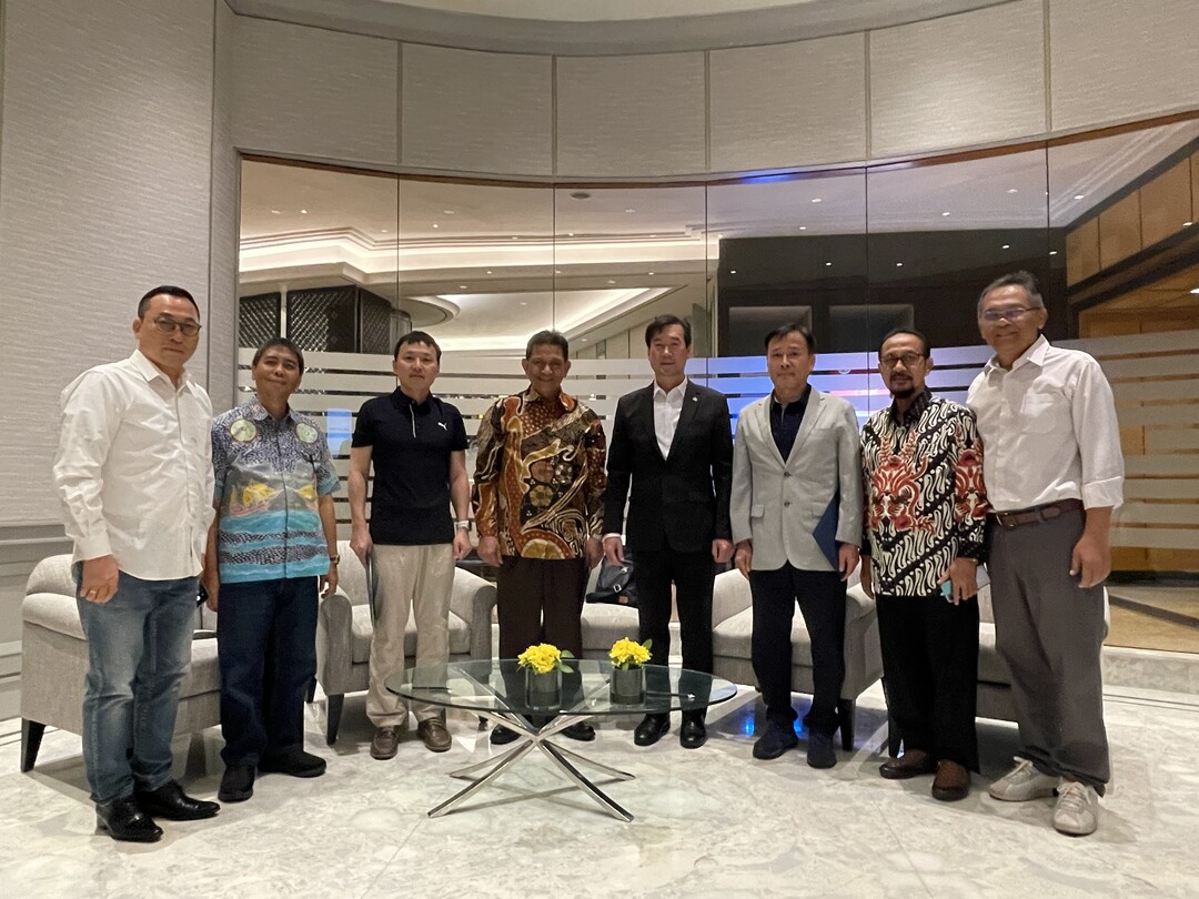 | 송하철(왼쪽에서 다섯번 째) 총장 등 목포대와 전남대불산학융합원, KAMPUH WELDING INDONESIA 관계자들이 지난 21일 인도네시아에서 열린 업무협약식에서 기념촬영하고 있다. 사진=목포대 제공 |