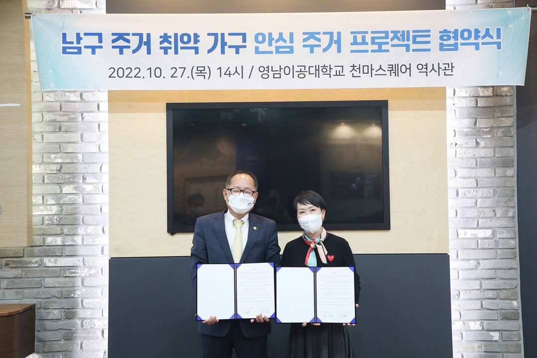 [대학저널 오혜민 기자]영남이공대학교는 27일 대구남구가족센터와 ‘남구 주거 취약 가구 안심 주거 프로젝트’를 위한 업무협약을 체결하고 청년 1인 가구 지원에 나선다.