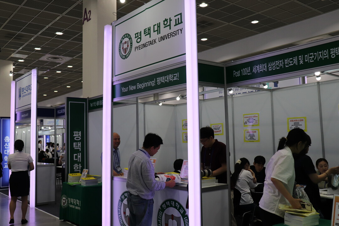 [대학저널 조영훈 기자] 한국대학교육협의회가 주최하는 '2024학년도 수시 입학정보박람회'가 20일 서울 삼성동 코엑스에서 개막됐다. 오는 22일까지 열리는 수시박람회에는 전국 146개 대학이 참가하고 있다. 현재 수험생들이 대학부스에서 입시 상담을 진행하고 있다. 사진은 평택대학교 상담부스 모습.