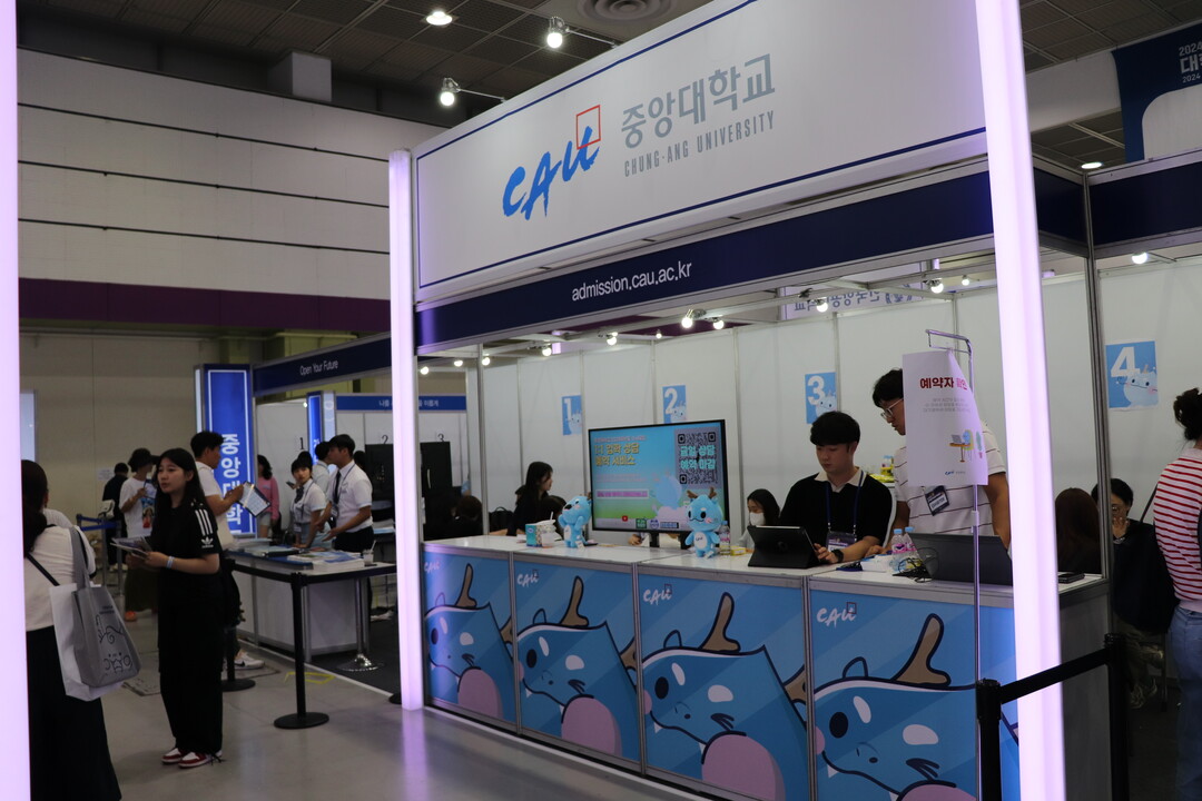 [대학저널 조영훈 기자] 한국대학교육협의회가 주최하는 '2024학년도 수시 입학정보박람회'가 20일 서울 삼성동 코엑스에서 개막됐다. 오는 22일까지 열리는 수시박람회에는 전국 146개 대학이 참가하고 있다. 현재 수험생들이 대학부스에서 입시 상담을 진행하고 있다. 사진은 중앙대학교 상담부스 모습.