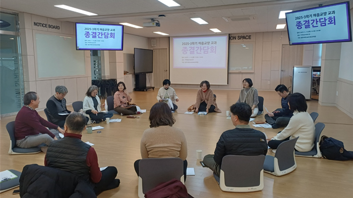이번 종결간담회는 2025학년도 1학년 3학기 <마음발견> 및 2학년 3학기 <마음공감> 교과 운영에 대한 자체진단평가와 평가 결과 환류를 통한 교수학습 방법 개선 및 수업의 질 제고를 위해 수업을 담당했던 교수자들의 의견을 듣고자 마련되었다.