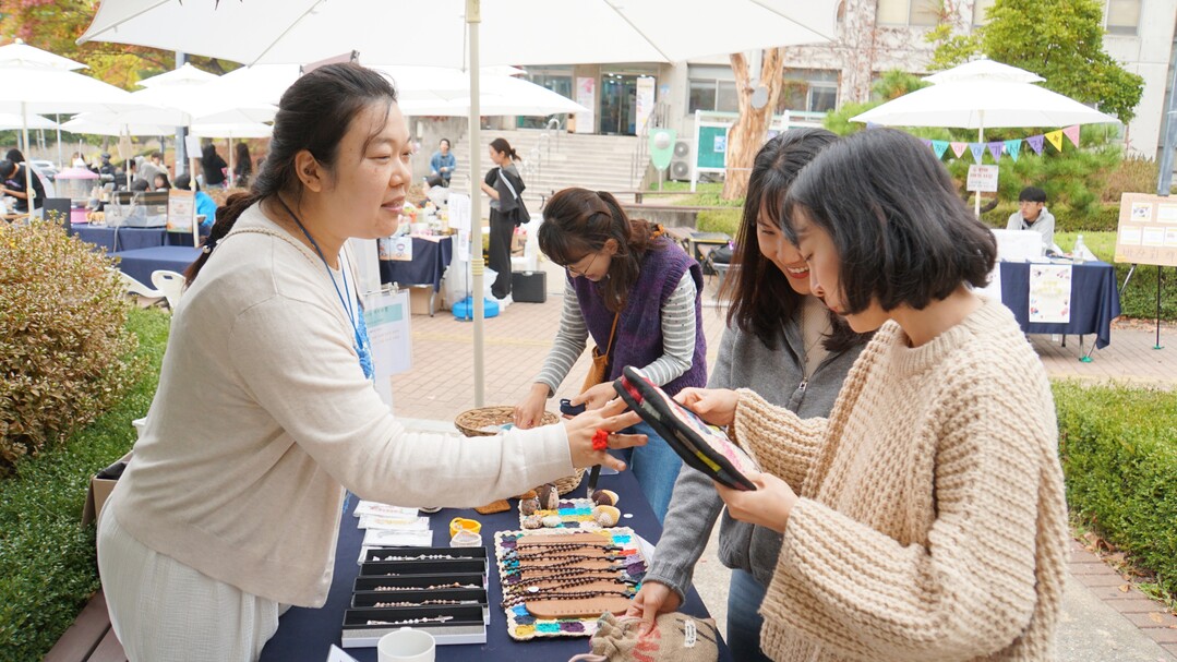 성공회대 직원들은 10월 31일부터 11월 1일까지 성공회대 느티아래에서 열린 창업마켓 ‘씀’ 행사에서 분식과 퀼트공예품, 열쇠고리, 가방 등 직접 만든 수공예품을 판매했다.