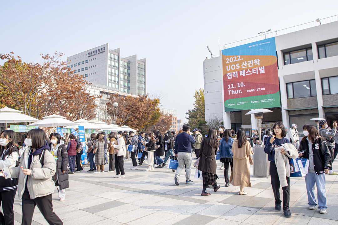 [대학저널 오혜민 기자]서울시립대학교가 10일 산관학 협력 우수성과를 공유하고 대학과 협력하는 기업·기관을 홍보하는 교류의 장 ‘2022 UOS 산관학 협력 페스티벌’을 열었다.