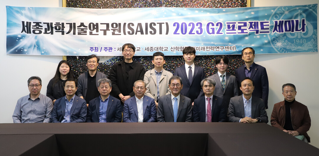 지난 11월 3일 세종대 대양AI센터에서 개최된 세종과학기술연구원(SAIST) G2 프로젝트(시스템반도체) 세미나 참석자들이 기념촬영을 하고 있다. 사진=세종대 제공 |