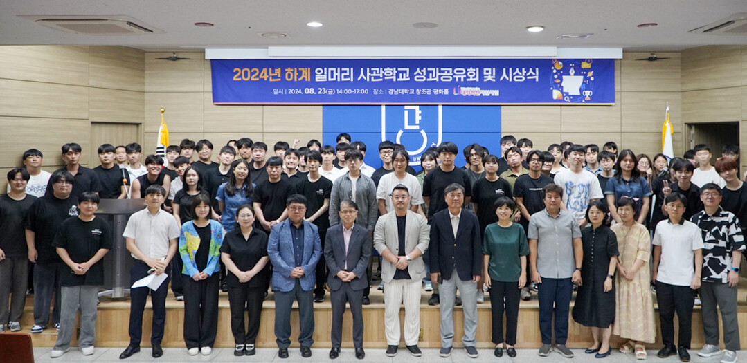 2024년 하계 일머리 사관학교 성과공유회 참석자들이 기념촬영을 하고 있다. 사진=경남대 제공 |