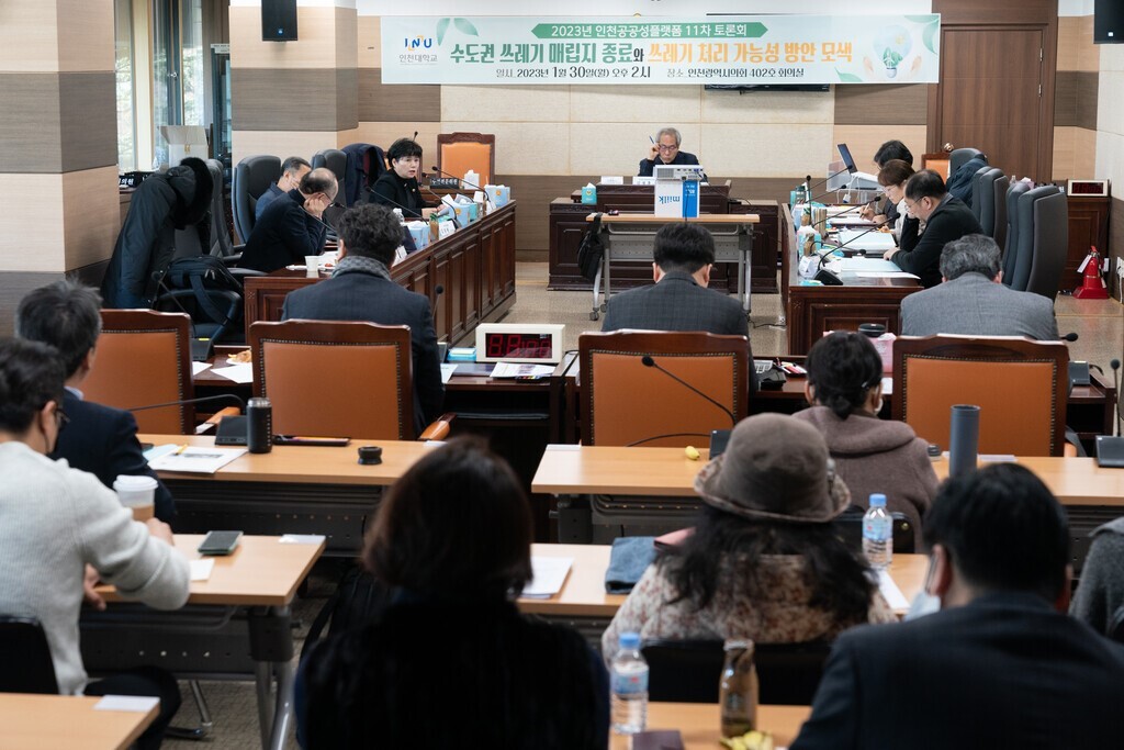 [대학저널 온종림 기자] 인천대학교 인천공공성플랫폼 주관 11차 토론회 ‘수도권 쓰레기 매립지 종료와 쓰레기처리 가능성 방안 모색’이 30일 인천시의회 402호에서 열렸다.