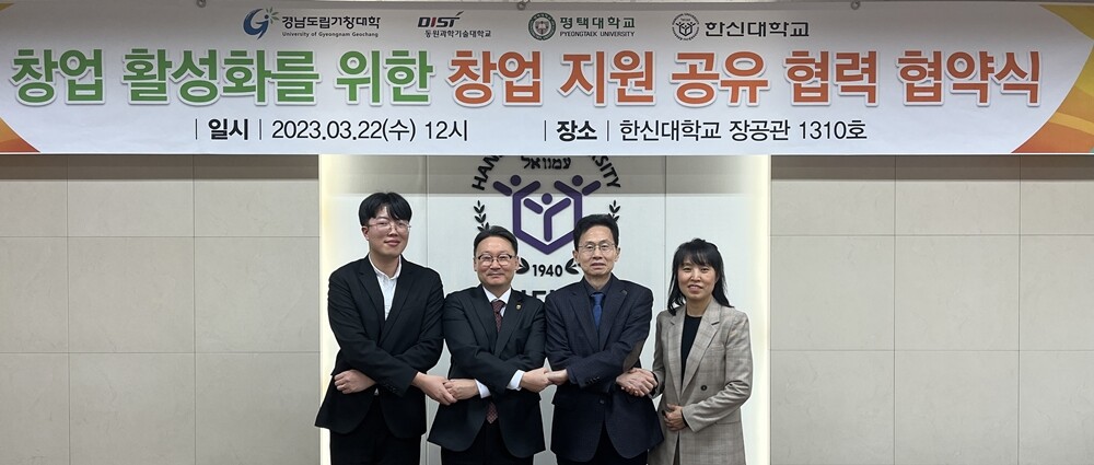 [대학저널 온종림 기자] 한신대학교는 22일 경남도립거창대, 동원과학기술대, 평택대와 대학별 특성화 부문의 상호협력을 통한 창업생태계 구축을 위해 업무협약을 체결했다.