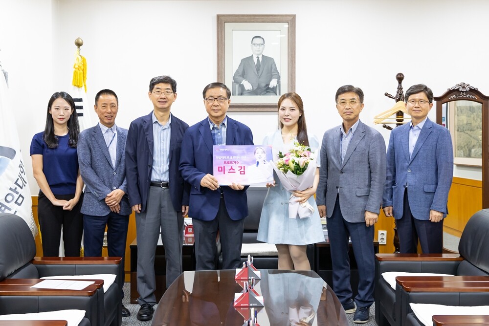 이날 개최된 홍보대사 위촉식은 육근열 총장과 유흥연 학생홍보처장 등 교직원이 참석한 가운데 가수 미스김에게 홍보대사 위촉패를 전달했다.