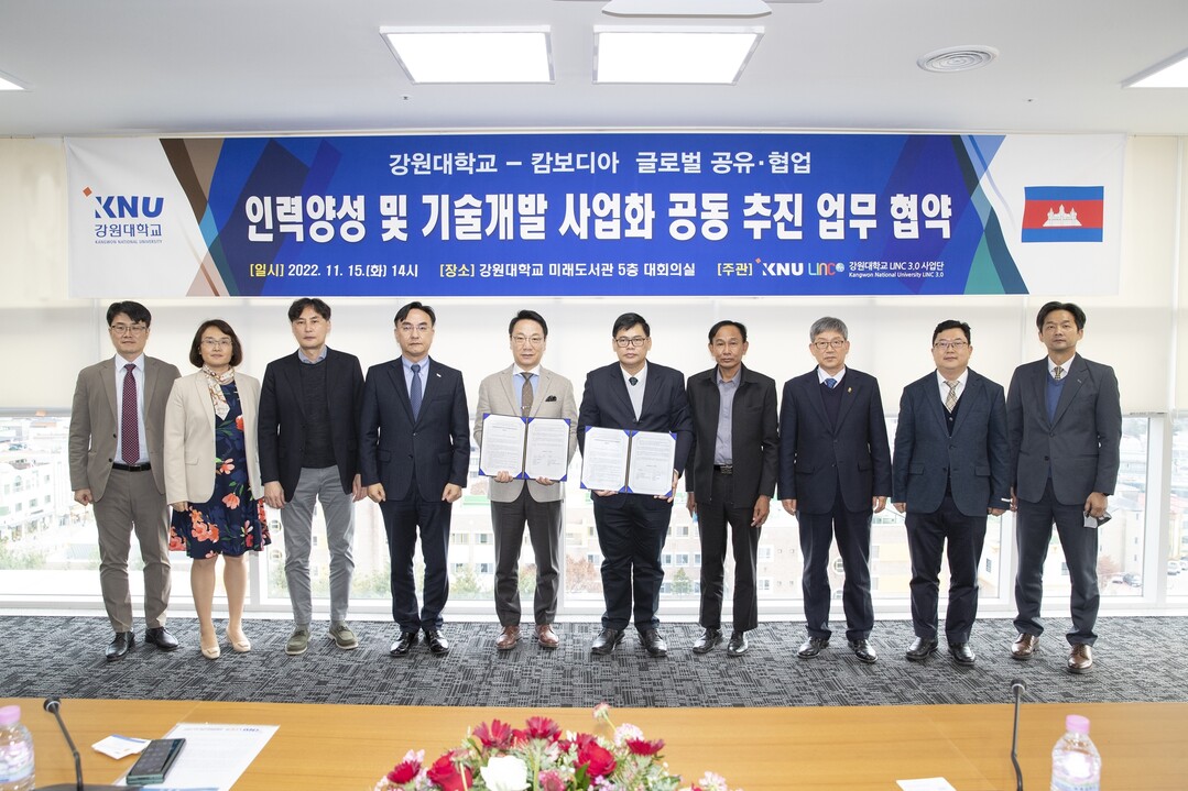 [대학저널 온종림 기자]강원대학교는 15일 캄보디아 정부와 ‘인력양성 및 기술개발 사업화 업무협약’을 체결했다.