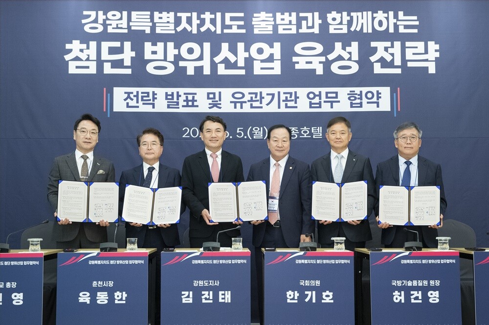 이번 협약은 강원도 첨단 방위산업과 지역경제 활성화 기여 및 상호 발전을 위한 협력을 목적으로 마련됐다.