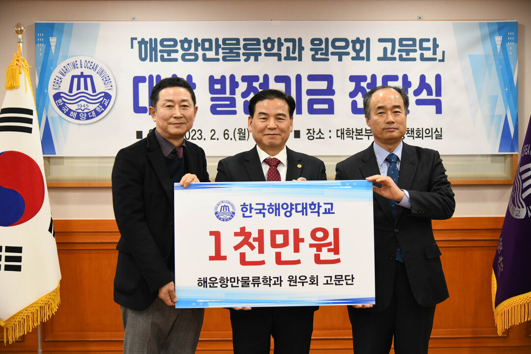 [대학저널 김진수 기자] 한국해양대학교는 6일 글로벌물류대학원 해운항만물류학과 원우회 고문단이 발전기금 1000만원을 기부했다고 밝혔다.