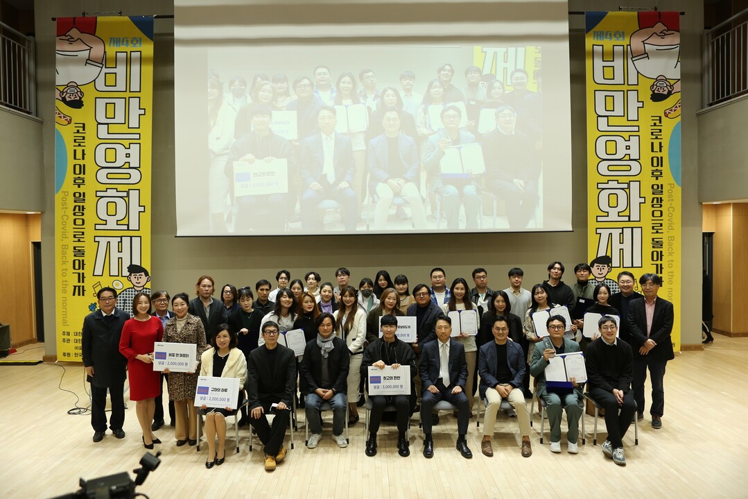 지난 22일 열린 제4회 비만영화제 시상식에서 참석자들이 기념촬영을 하고 있다. 사진=인천재능대 제공 |