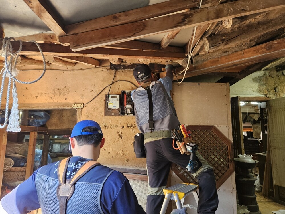 한기대 학생들이 28일 천안시 동남구 북면 일대에서 ‘지역 사회 상시 기술봉사활동’을 통해 전기 배선 수리와 LED 교체, 콘셉트 설치 등을 진행했다. 사진=한기대 제공 |