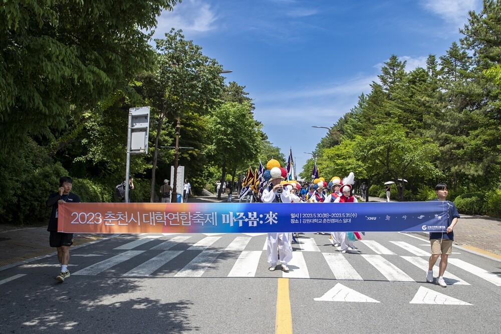 [대학저널 온종림 기자] 강원대학교를 비롯한 춘천지역 5개 대학과 춘천시민들이 함께하는 사상 첫 공동 이벤트인 춘천시 대학연합축제 ‘마주봄:來’가 30일 강원대 춘천캠퍼스 및 후문 일대에서 화려하게 개막했다.