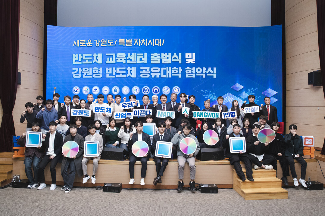 이와 관련, 강원도 관계자는 “‘Made 人 강원, 반도체 인재 1만 양성’을 목표로 1호 사업으로 추진되고 있는 반도체 교육센터의 출범을 알리고, 도내 7개 대학과 특성화고의 반도체 공유대학을 시작하기 위한 자리이며, 지역 학교와 강원도 반도체 클러스터 조성을 위해 힘을 모으는 데 의의가 있다”고 설명했다.