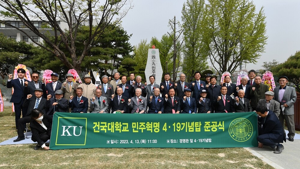 4·19 민주혁명 기념탑은 1960년 4·19혁명에 동참했던 건국대 졸업 동문들이 모여 지난 2016년 창립한 건국대 4·19회가 주축이 돼 조성했다.
