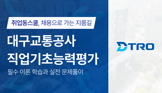 취업동스쿨은 2025년도 대구교통공사 신입사원(일반직) 모집 필기시험을 대비하는 NCS 직업기초능력평가 인터넷 강의를 오픈했다고 밝혔다.