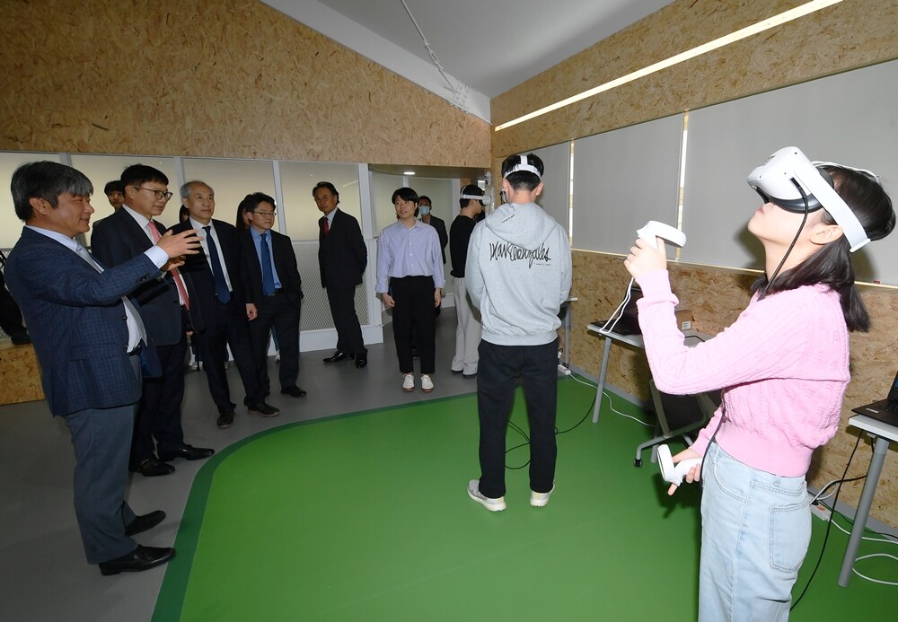 X-Space는 ▲크로마키와 VR모션캡쳐 장비를 갖춘 콘텐츠 제작실 X-Studio ▲창작·기획·실습 등을 위한 학생 지도 창작소 X-Arena ▲시뮬레이터 운영·체험과 학생 주도 학습 공간 VR 실습실 ▲실감미디어 분야 예비창업자를 위한 시제품 제작실 등 4개 공간으로 구성됐다.