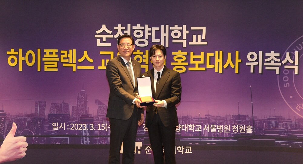 [대학저널 온종림 기자] 순천향대학교는 15일 케이팝 아티스트 EXO의 수호를 하이플렉스 교육혁신 홍보대사로 위촉했다.
