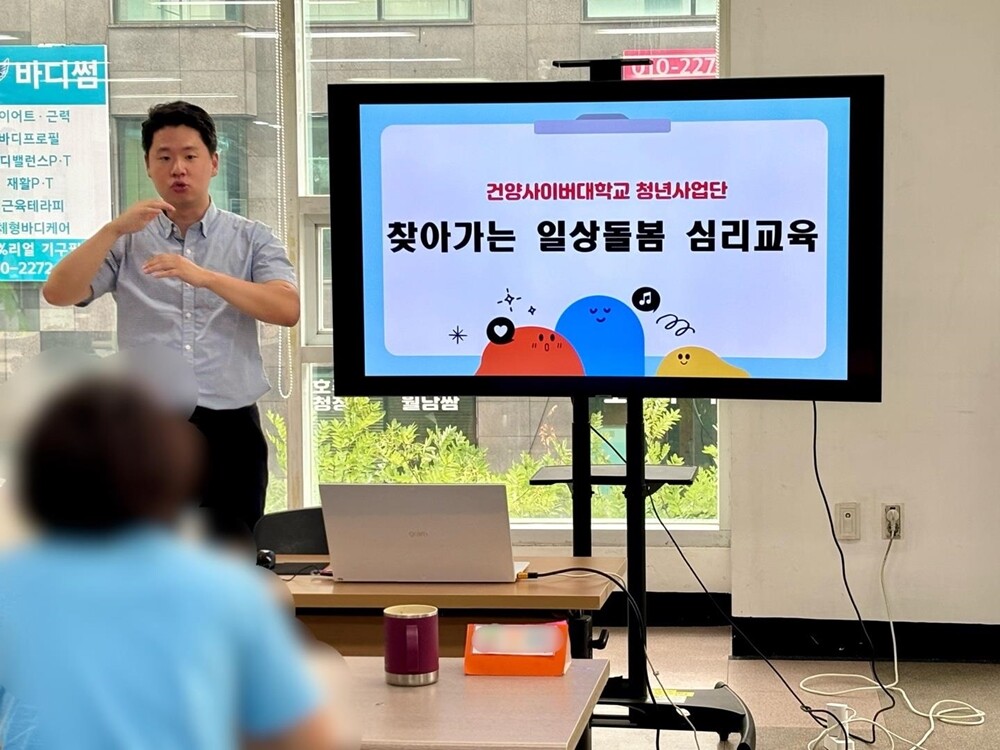 건양청년사업단 장영진 슈퍼바이저가 찾아가는 일상돌봄 심리교육으로 디지털 성폭력 예방교육을 진행했다. 사진=건양사이버대 제공 |