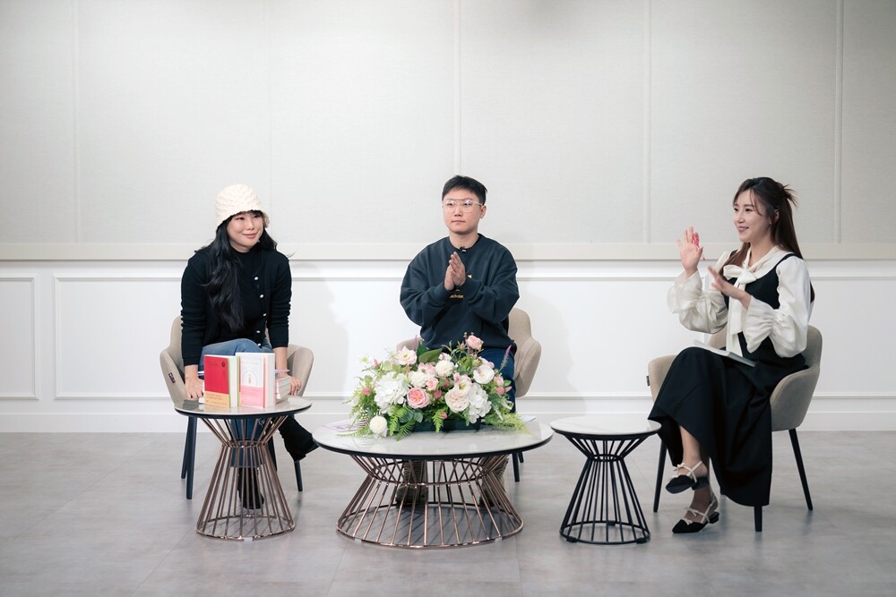 김수현(왼쪽) 작가와 여행 유튜버 빠니보틀(가운데)이 서울과기대의 쌍방향 소통형 온라인 생방송 ‘ST LIVE’에 출연해 시청자들과 소통하고 있다. 사진=서울과기대 제공 |