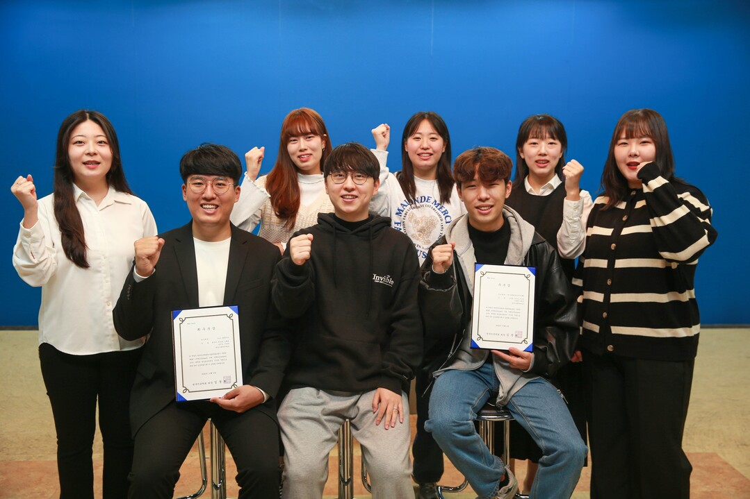 대구가톨릭대 학생들이 ‘제3회 대학생 영상공모전 ’언택트(Untact) 시대, 콘택트(Contact) 소비’에서 최우수상 등을 받은 뒤 기념촬영을 하고 있다. 사진=대구가톨릭대 제공 |