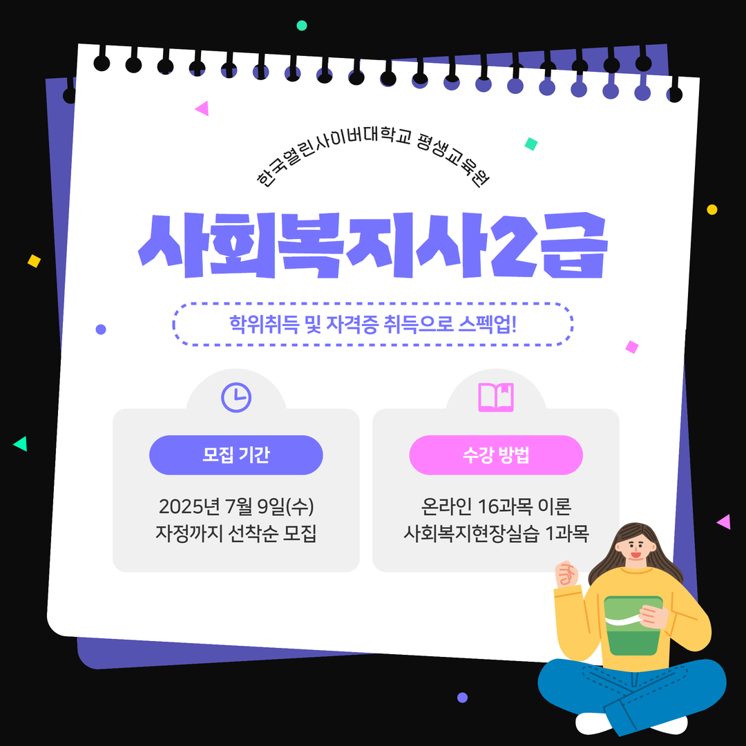 이번 사회복지사 2급 자격증 과정은 7월 9일까지 수강생을 모집하며, 개강은 7월 10일에 진행될 예정이다.