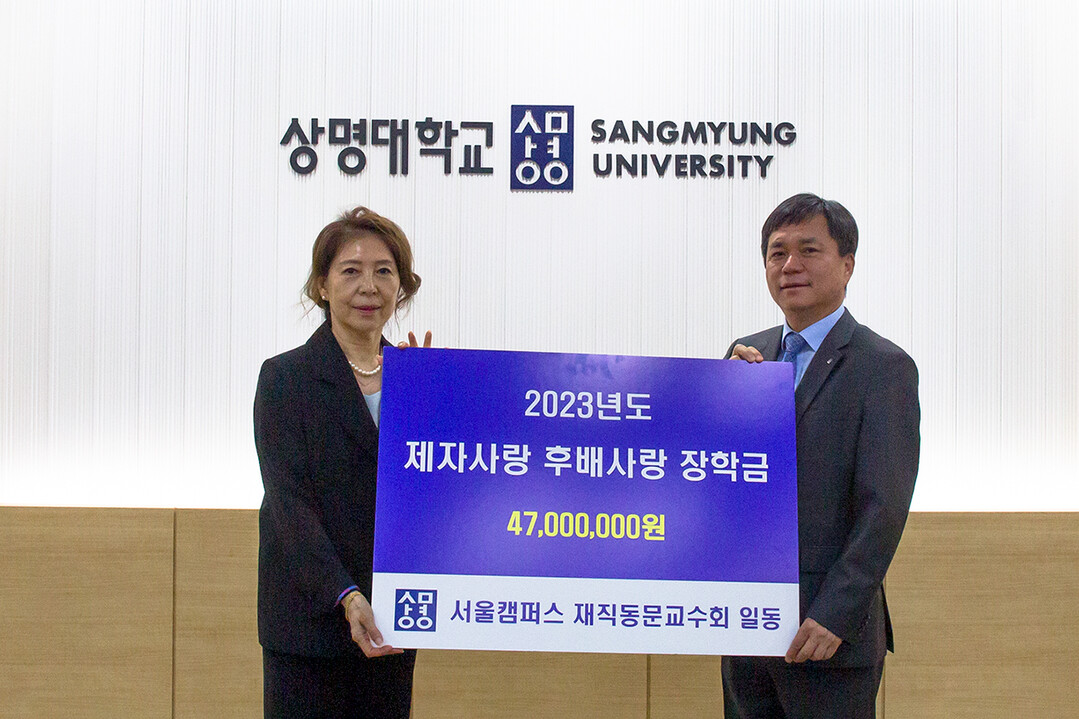 [대학저널 온종림 기자] 상명대학교는 15일 서울캠퍼스에 재직하고 있는 동문 교수들이 장학금 4700만원을 대학에 전달했다고 밝혔다.