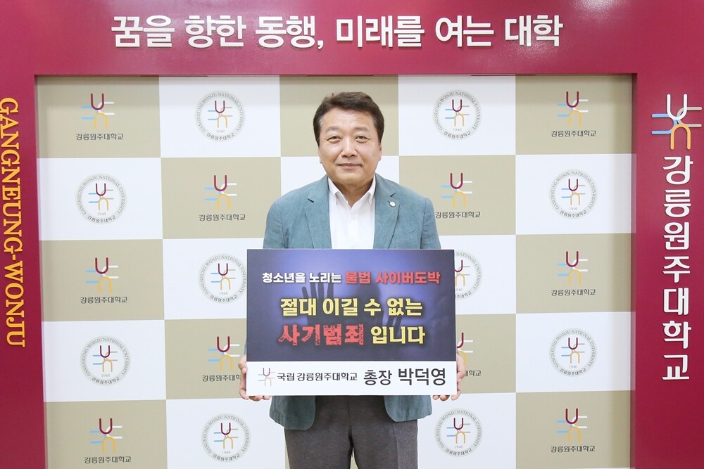 [대학저널 온종림 기자] 국립강릉원주대학교 박덕영 총장이 23일 청소년 도박 근절을 위한 챌린지에 동참했다.