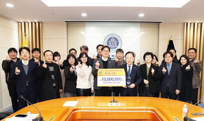 [대학저널 온종림 기자] 국립공주대학교가 5일 학본부 중회의실에서 (재)국립공주대학교 발전기금 기탁식을 개최했다. 임경호 총장은 2026년을 맞아 아너스클럽 2026-1호로서 발전기금 1,000만 원을 기탁했다.