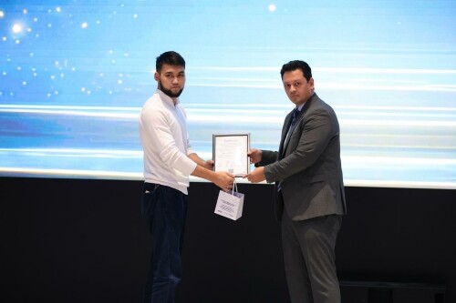| 루슬란 술타노프 Uzinfocom 의료 디지털화 담당 이사가 ‘SEWPHC 통합 LIS 구축을 위한 기술이전 교육(심화과정)’ 수료자에게 수료증을 전달하고 있다. |