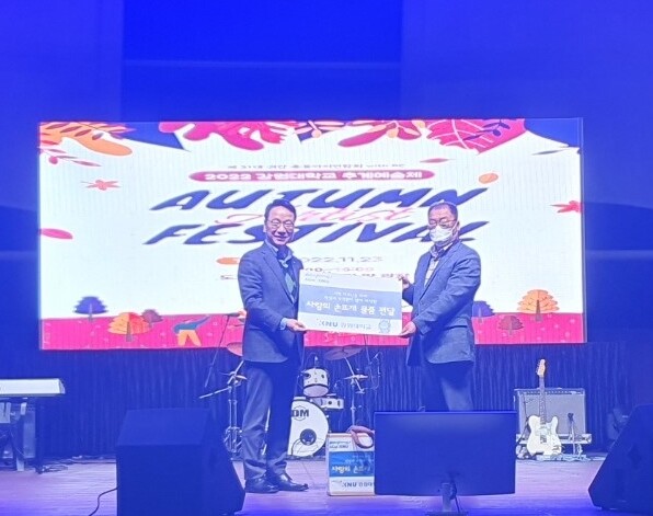 김헌영 총장은 김회영 도계읍장에게 가방.발판.담요 40여 점 등 사랑의 손뜨개 물품을 지역 어르신들을 위해 사용해 달라며 직접 전달했다. 뜨개 물품은 RC 인성역량 강화 프로그램 중 하나로 강원대 학생 및 교직원이 직접 뜨개질한 물품이다.