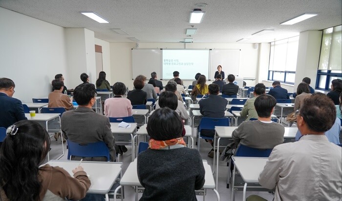 이효남 실장은 대학생 진로결정 과정의 주요 특성, 최신 채용 트렌드 변화에 따른 상담 접근법, 유형별 진로상담 전략, 데이터 기반 진로지도 방법 등 주요 내용을 다루며, 진로 지도 혁신 방향을 제시했다.