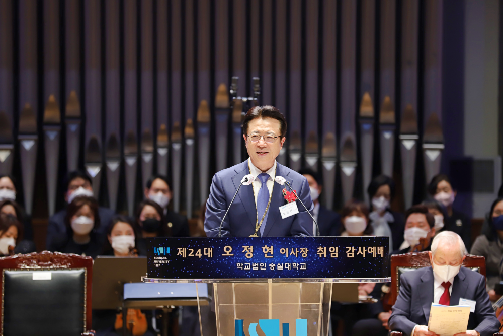[대학저널 온종림 기자]숭실대학교 학교법인 숭실대학교 제24대 이사장으로 사랑의교회 오정현 담임목사가 21일 취임했다.
