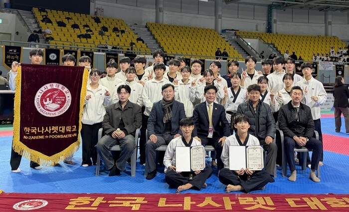 나사렛대가 대한태권도협회(KTA)가 주최한 ‘2026년도 태권도 국가대표 선수선발 최종전’에서 품새 국가대표 선수를 배출했다. 사진=나사렛대 제공 |