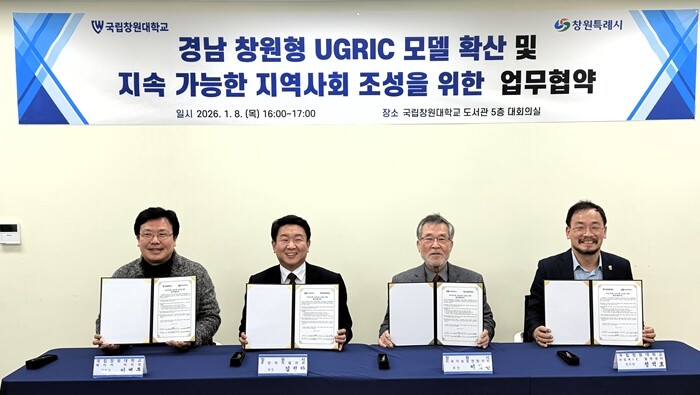 [대학저널 온종림 기자] 국립창원대학교 글로컬대학사업단이 지속가능한 지역사회 조성을 위해 UGRIC협력센터 및 메이커아지트, 창원시 주민자치협의회, 창원시 지속가능발전협의회와 업무협약(MOU)을 체결했다. 이번 협약은 대학과 지역사회가 협력해 지역 현안을 공동으로 해결하고, 청년이 정착하며 주민이 체감할 수 있는 지속가능한 지역사회 모델을 구축하기 위해 마련됐다.