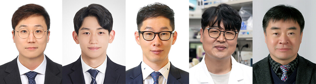 왼쪽부터 이동욱 연구원, 김세창 연구원, 최동윤 박사, 정원교 교수, 문명준 교수. |
