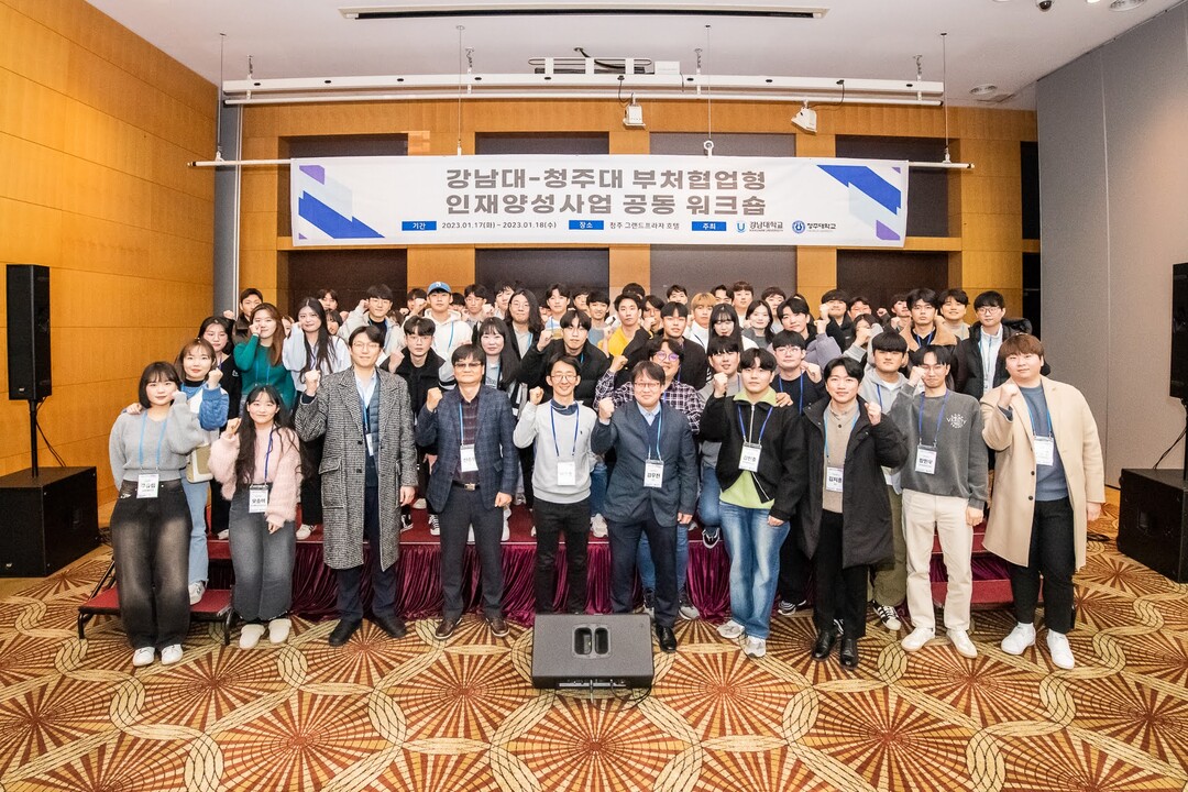 합동 워크숍에는 강남대 반도체 전공트랙사업 참여 학생과 교수, 청주대 미래형모빌리티 사업 참여 학생과 교수 등 70명이 참석했다.