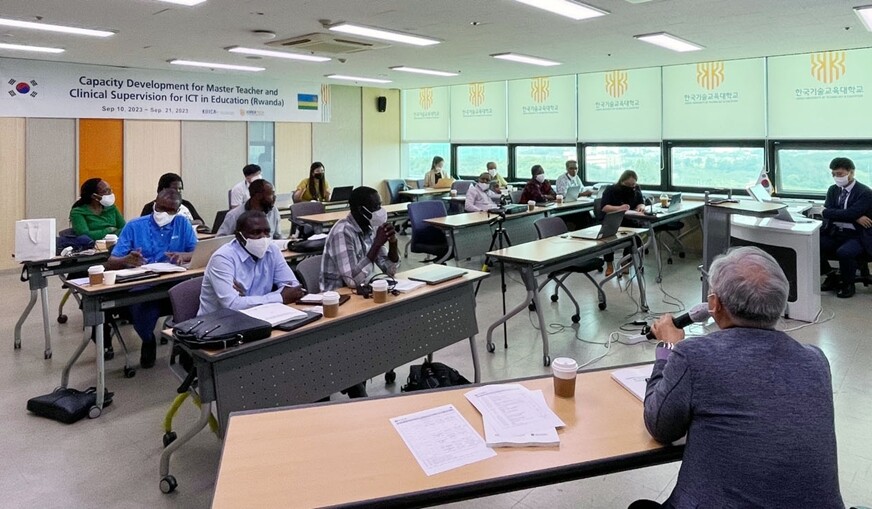 [대학저널 온종림 기자] 한국기술교육대학교 산학협력단과 개도국기술이전연구소는 ‘한국국제협력단(이하 KOICA) 르완다 ICT 활용 교육 촉진을 위한 지도교사 및 장학 역량강화(2021-2023)’ 사업의 일환으로 르완다 교육분야 ICT 업무담당자 및 장학사, 교사들을 대상으로 지난 10일부터 21일까지 2주 과정의 초청연수를 진행하고 있다.