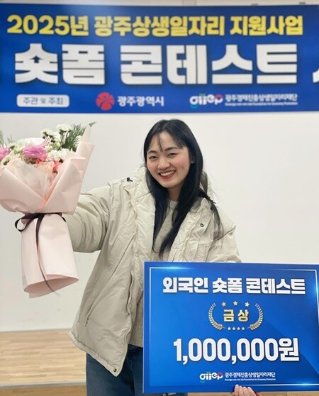 광주대 물류유통경영학과 석사과정 팜티홍늉 학생이 광주경제진흥상생일자리재단이 주최한 ‘외국인 숏폼 콘테스트’에서 금상을 수상했다. 사진=광주대 제공 |