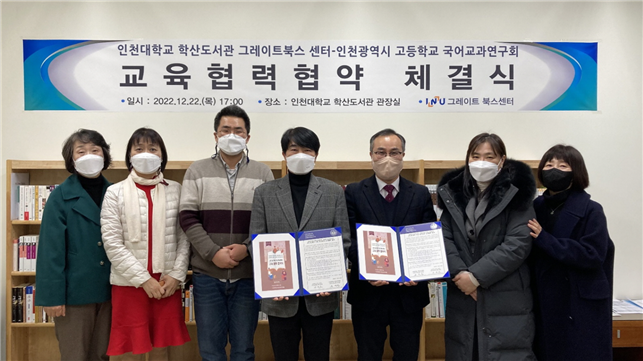 [대학저널 김주원 기자] 인천대 학산도서관(Great Books 센터)은 22일 인천광역시교육청 고등학교 국어교과연구회와 고전 및 명저 기반 토의(토론) 분야의 교육협력 협약을 체결했다고 밝혔다.